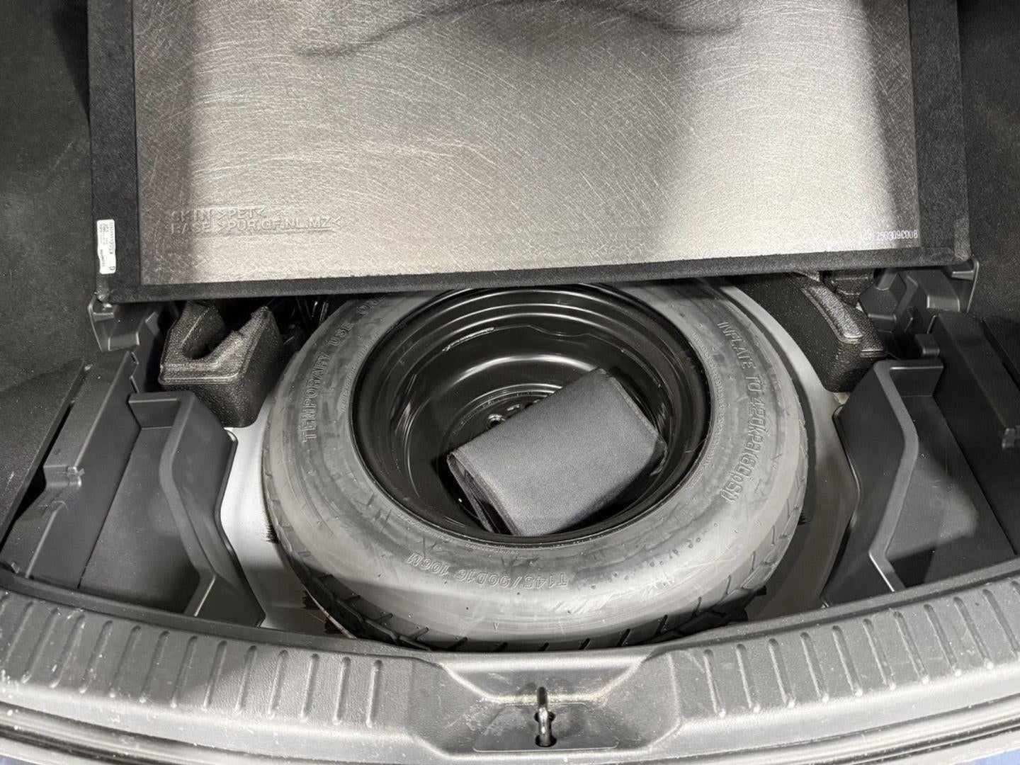 - Spare tire location Spare tire mounted under the cargo floor