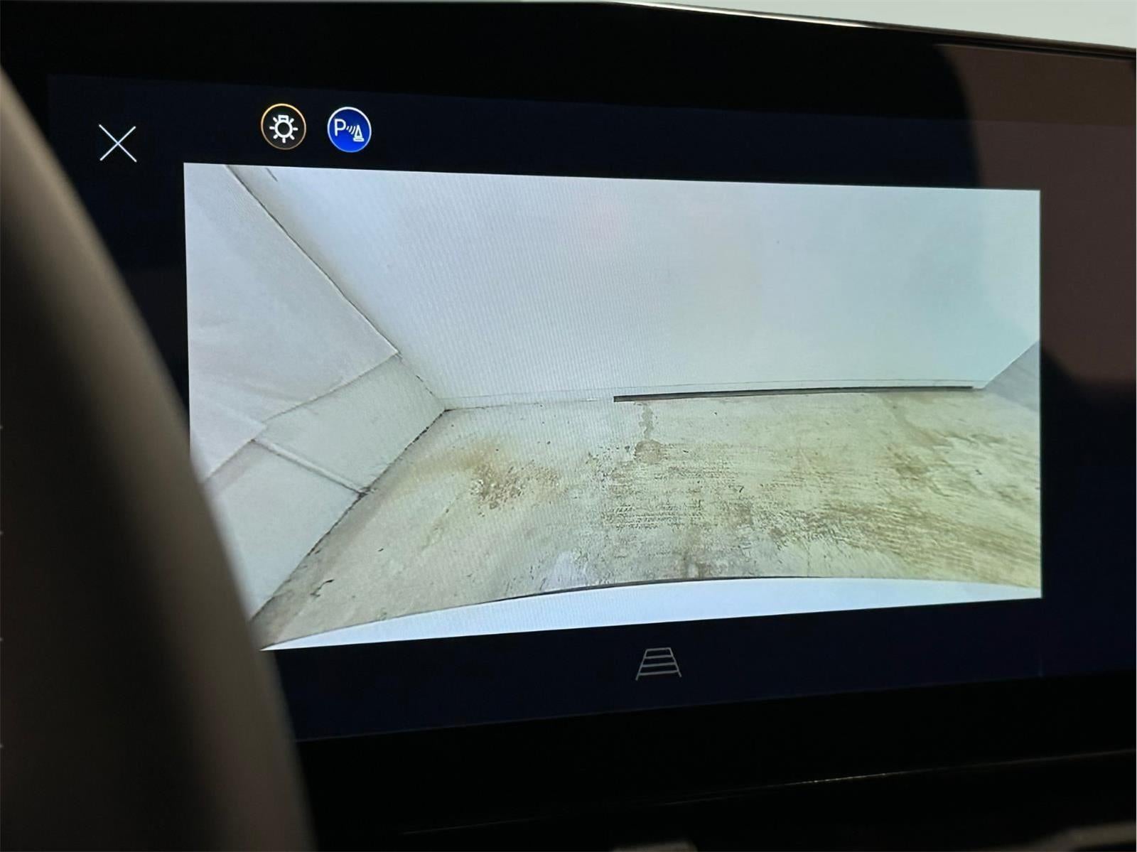 - The vehicle is equipped with a camera that displays an image of the area behind the vehicle on an interior display.